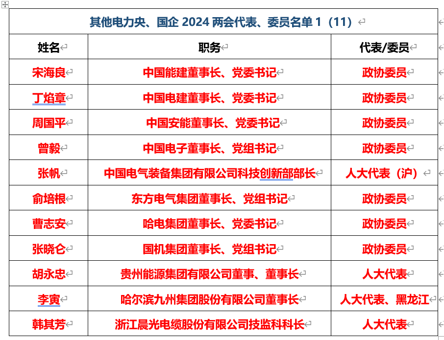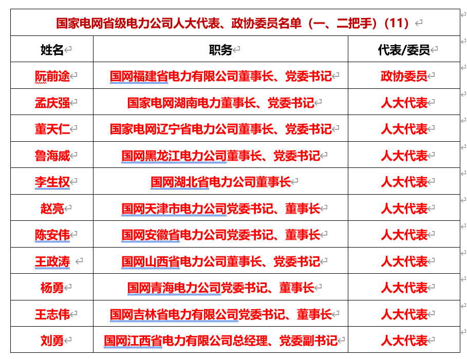 其中,國家電網(wǎng)代表、委員人數(shù)最多,達到21人,南方電網(wǎng)3人。