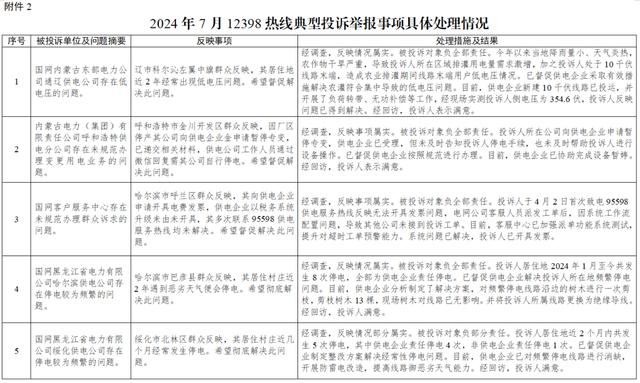 2024年7月,國家能源局12398能源監(jiān)管熱線(以下簡稱12398熱線)共接收投訴舉報1222件,辦結(jié)投訴舉報682件(含往期結(jié)轉(zhuǎn))?,F(xiàn)將有關(guān)情況通報如下: