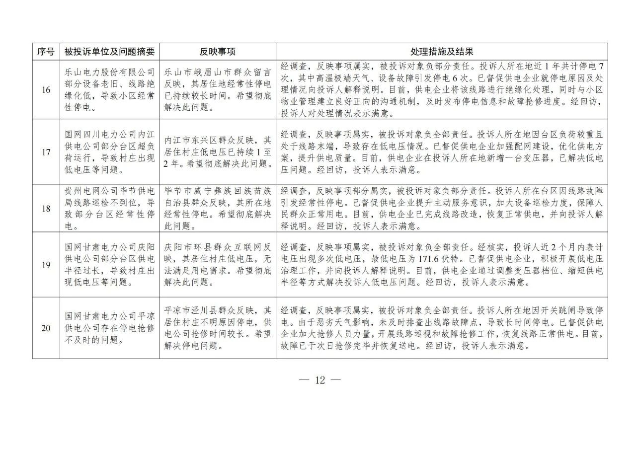 國家能源局11月份12398能源監(jiān)管熱線投訴舉報辦理情況