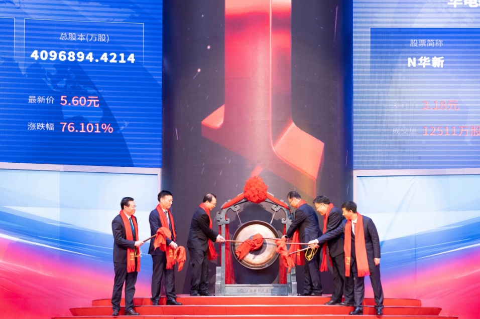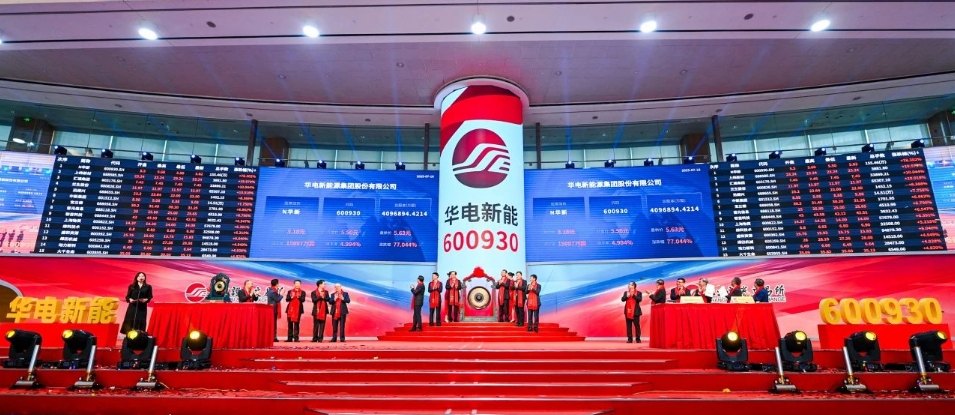伴隨著響亮的鑼聲,中國華電集團有限公司旗下新能源旗艦平臺——華電新能源集團股份有限公司(股票簡稱:華電新能,股票代碼:600930)今日正式登陸上海證券交易所主板,標(biāo)志著這家國內(nèi)規(guī)模最大的新能源發(fā)電企業(yè)成功駛?cè)胭Y本市場的廣闊藍海,開啟了以資本賦能綠色發(fā)展的嶄新征程。掛牌上市當(dāng)日開盤價5.5元/股,收盤價7.18元/股,漲幅125.79%,上市首日市值近3000億元,成為A股市值最高的新能源發(fā)電行業(yè)上市公司。