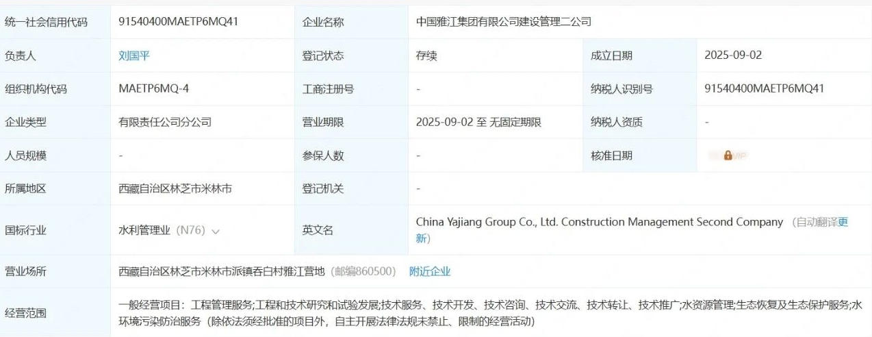新央企中國雅江集團(tuán)設(shè)立兩公司