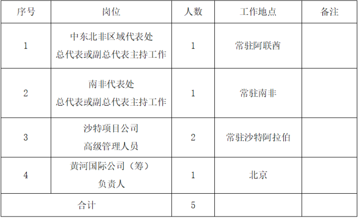 根據(jù)國(guó)家電投對(duì)境外代表處建設(shè)要求,以及黃河公司國(guó)際業(yè)務(wù)開展的需要,現(xiàn)面向國(guó)家電投系統(tǒng)內(nèi)、社會(huì)層面公開招聘黃河公司國(guó)際業(yè)務(wù)高級(jí)管理人員,具體事項(xiàng)如下: