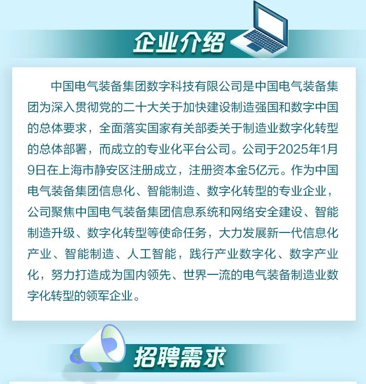 中國(guó)電氣裝備集團(tuán)數(shù)字科技有限公司招聘公告