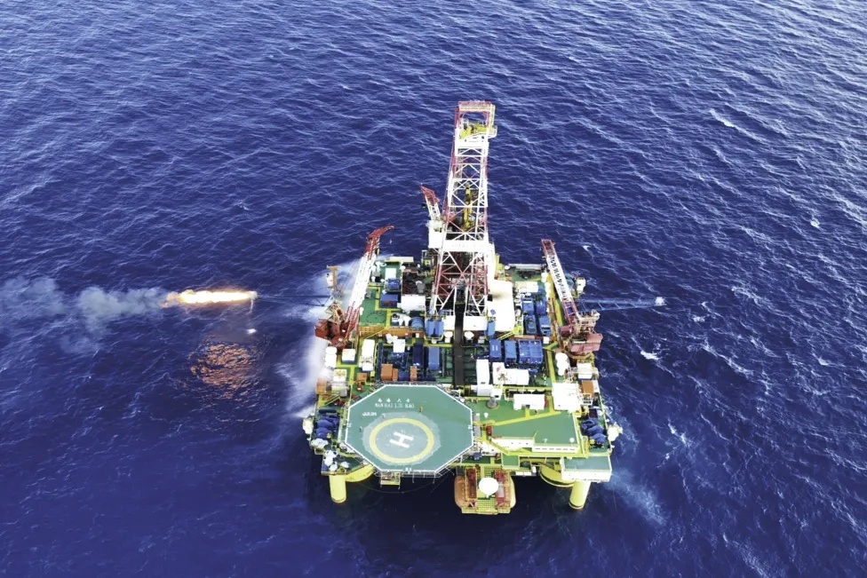 “深藍探索”在開平南油田進行鉆探作業(yè),噴射鉆頭正在入井