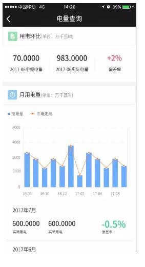 售電公司可在網(wǎng)上營業(yè)廳查詢客戶每月實際用電情況,安裝有計量采集系統(tǒng)的客戶還可以查看到每15分鐘一條的實際用電曲線,方便客戶了解自身用電情況,合理安排用電計劃,節(jié)省電費(fèi)開銷。