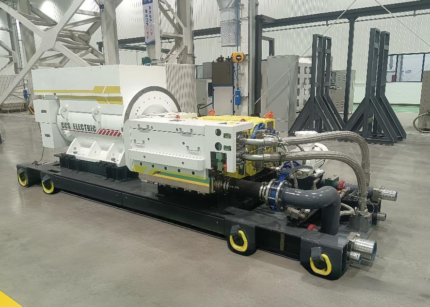 2024年,“2000升/分鐘40兆帕乳化液泵站”研發(fā)成功,該系統(tǒng)是全新一代高端乳化液泵站,首次實(shí)現(xiàn)了高壓超大流量七柱塞驅(qū)動,超長跨距的七拐六支撐曲軸交替工作,有效降低了工作液輸出端的流量波動。該產(chǎn)品目前是世界最大流量乳化液泵,主要適用于千萬噸級礦井及遠(yuǎn)距離工作場景,可實(shí)現(xiàn)“一泵替代多泵”,為工作面設(shè)備列車減重減負(fù),進(jìn)一步提升了供液效率,推進(jìn)了我國礦用高端大流量乳化液泵發(fā)展進(jìn)入快車道。
