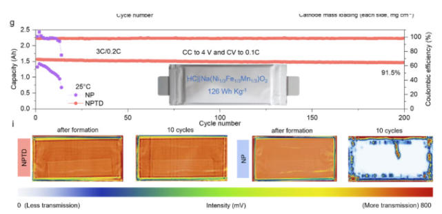 鈉電領域標志性成果:北航王華團隊實現(xiàn)鈉電軟包常溫3C快充,-20°C下0.5C充電,通過超聲成像技術分析結果進一步證實了3C快充的安時級鈉離子軟包電池的安全性及穩(wěn)定循環(huán)。