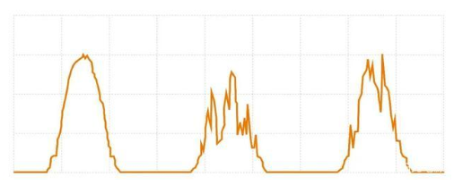 圖2為海外某200MW電站三天的實(shí)際發(fā)電曲線,電站采用1.42倍容配比+跟蹤系統(tǒng)設(shè)計(jì)。電站逆變器從早上8點(diǎn)到下午5點(diǎn)一直處于滿功率運(yùn)行狀態(tài),相較于圖1,該電站發(fā)電曲線幾乎呈平直狀態(tài),即使光照出現(xiàn)一定程度的波動,逆變器輸出功率也只是出現(xiàn)微小變化,整個電站的輸出更加穩(wěn)定。
