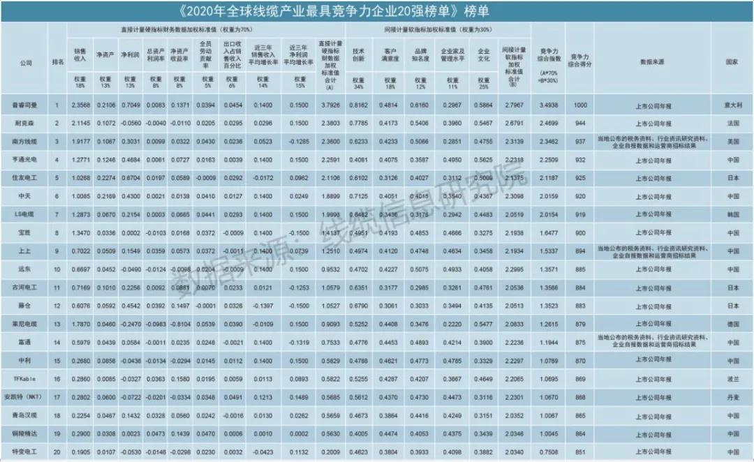 2020年全球線纜產(chǎn)業(yè)最具競爭力企業(yè)10強(qiáng)榜單第四位