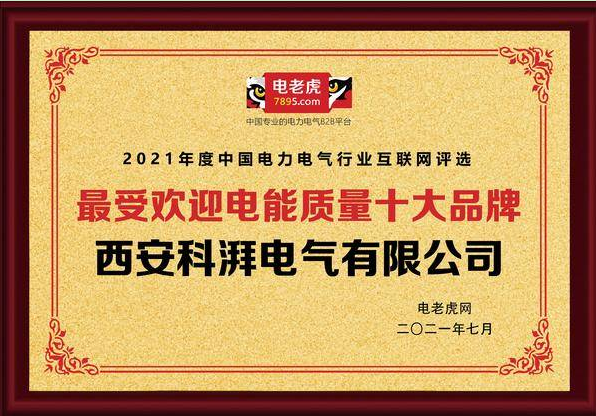 本次評選活動(dòng)有近百家有實(shí)力的電能質(zhì)量生產(chǎn)企業(yè)參與,最終西安科湃電氣有限公司憑借創(chuàng)新的生產(chǎn)工藝、超強(qiáng)的品牌傳播、超高的人氣支持等榮獲2021年度中國電力電氣行業(yè)“最受歡迎電能質(zhì)量十大品牌”。