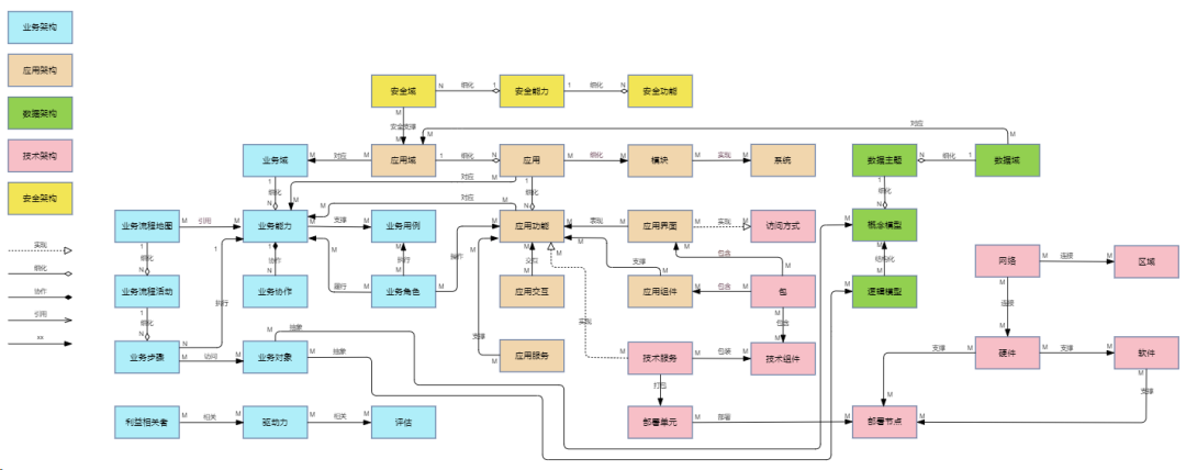 架構(gòu)元模型是企業(yè)的標(biāo)準(zhǔn)、規(guī)范、指引,是進(jìn)行架構(gòu)設(shè)計(jì)的基礎(chǔ)。架構(gòu)元模型包括架構(gòu)對(duì)象和對(duì)象關(guān)系,其中架構(gòu)對(duì)象決定架構(gòu)有哪些元素可以設(shè)計(jì),是元模型的核心部分。