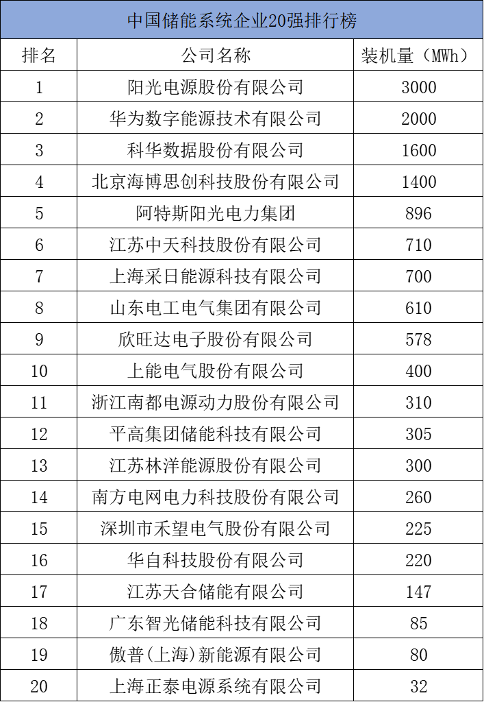 2022中國儲能系統(tǒng)企業(yè)20強出爐 陽光電源穩(wěn)居第一