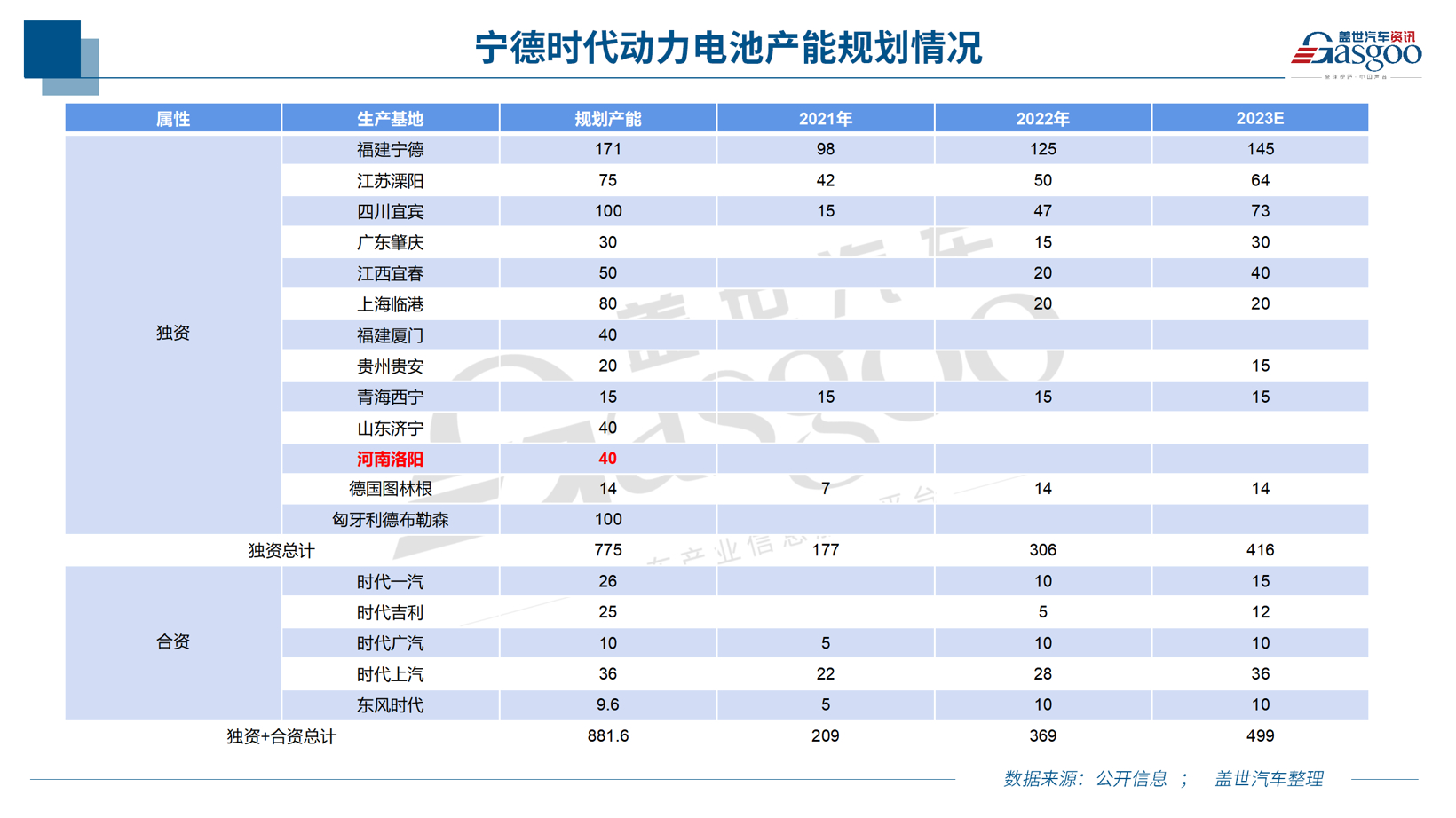 此外,寧德時(shí)代還與各大主機(jī)廠合資工廠規(guī)劃產(chǎn)能合計(jì)超100GWh。