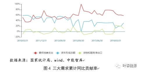 同時,從消費(fèi)、投資和國外三大需求累計同比對GDP貢獻(xiàn)率看,消費(fèi)對經(jīng)濟(jì)增長的貢獻(xiàn)率逐步成為中流砥柱,而投資形成貢獻(xiàn)率趨于穩(wěn)定。