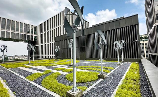 浙能源力科創(chuàng)中心大廈智慧綜合能源供應系統(tǒng)中的風力發(fā)電設備。 趙申軼攝