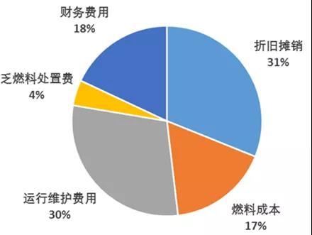 核電發(fā)電成本由折舊攤銷、燃料成本、運(yùn)行維護(hù)費(fèi)用、財(cái)務(wù)費(fèi)用、乏燃料處置費(fèi)用等組成(見圖2)。在電改背景下,核電上網(wǎng)面臨“量價(jià)齊跌”壓力,經(jīng)濟(jì)性提升壓力日益增大,并進(jìn)一步向上游傳導(dǎo)至核燃料加工產(chǎn)業(yè)。
