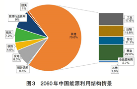 決定碳排放的第二個(gè)因素是能源清潔水平,而能源清潔水平是由非化石能源發(fā)展決定的。非化石能源(水、核、風(fēng)、光等)主要以電能形式被利用,到2060年將作為主要的能源品種用于社會(huì)生產(chǎn)生活,預(yù)計(jì)將占能源消費(fèi)總量的80%以上(見圖4),客觀上決定了未來以清潔電力為中心的高電氣化能源利用格局,同時(shí)也表明電力系統(tǒng)深度脫碳對(duì)碳中和目標(biāo)的重要作用。而非完全電氣化部門,例如少數(shù)工業(yè)過程(采礦、鋼鐵、水泥、化工等部分生產(chǎn)環(huán)節(jié))、交通部門(長(zhǎng)距離貨運(yùn)、遠(yuǎn)洋航運(yùn)和航空等),盡管生產(chǎn)能耗顯著降低,但部分生產(chǎn)環(huán)節(jié)仍需一定量的化石能源,難以實(shí)現(xiàn)完全脫碳,意味著仍會(huì)有一定數(shù)量的與能源相關(guān)的二氧化碳排放。這部分二氧化碳需要由碳匯來中和。碳匯主要包括自然碳匯(自然生態(tài)系統(tǒng)固碳)和技術(shù)碳匯(碳捕獲與儲(chǔ)存技術(shù),CCS)。2016年我國(guó)森林碳匯達(dá)到每年5-6億噸水平;有研究顯示,2010-2016年中國(guó)陸地生態(tài)系統(tǒng)碳匯年均11.1±3.8億噸,未來自然碳匯會(huì)小幅增加但很難實(shí)現(xiàn)翻倍增長(zhǎng)。預(yù)計(jì)2060年我國(guó)能源相關(guān)碳排放降至14億噸,若加上非能源類碳排放,無法完全依靠自然碳匯實(shí)現(xiàn)碳中和,還需發(fā)展技術(shù)碳匯。