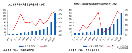 2023年硅料瓶頸解決,價(jià)格回落有望向下游讓利,關(guān)注硅料下游盈利有望增厚。受益技術(shù)變化,TOPCon放量,相關(guān)企業(yè)盈利有望增長,相關(guān)輔材,比如POE粒子,受益于供需緊張有望量價(jià)齊升。