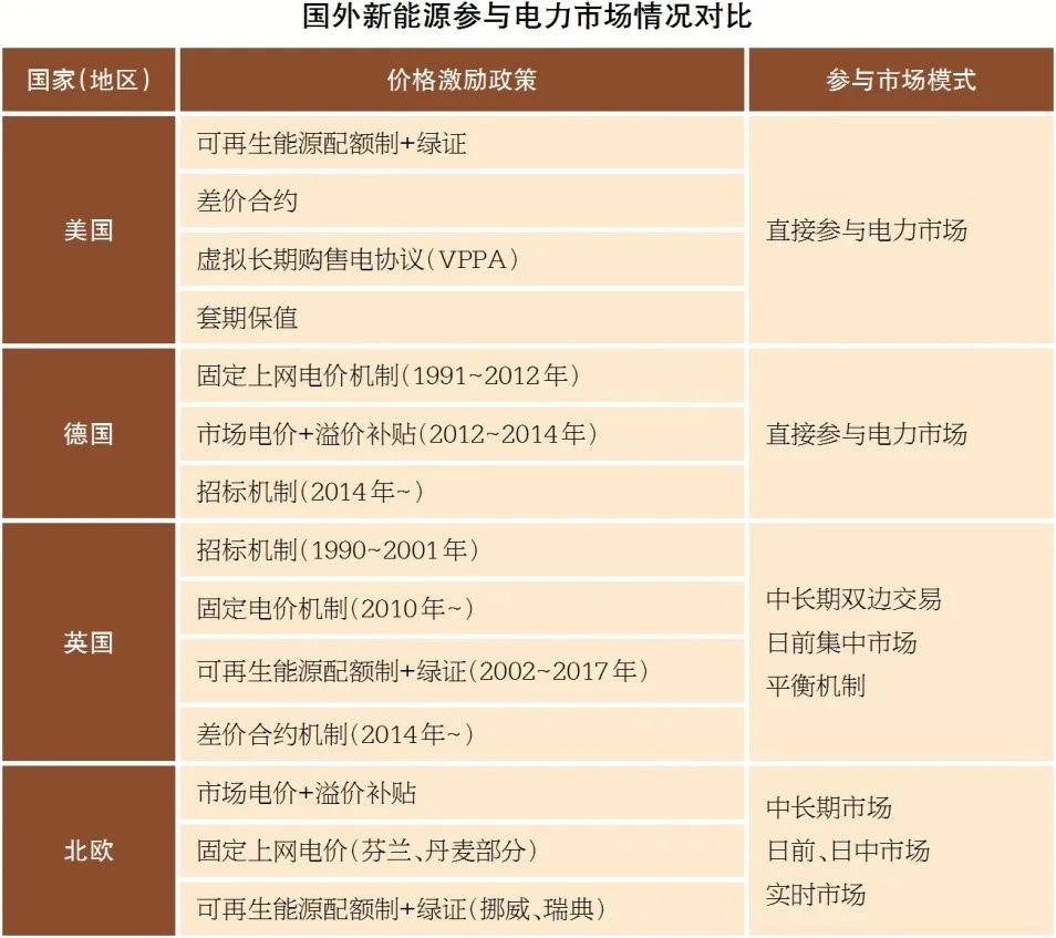 從全世界范圍來(lái)看,在新能源發(fā)展初期,許多國(guó)家通過(guò)固定上網(wǎng)電價(jià)機(jī)制、溢價(jià)補(bǔ)貼機(jī)制、“可再生能源配額制+綠證”、差價(jià)合約等政策機(jī)制鼓勵(lì)新能源產(chǎn)業(yè)發(fā)展,基本是以保障性消納為主,市場(chǎng)化機(jī)制為輔,不斷提升新能源在電力市場(chǎng)中的競(jìng)爭(zhēng)力。隨著新能源快速發(fā)展、競(jìng)爭(zhēng)力不斷提升,政府逐漸減少補(bǔ)貼,推動(dòng)其平價(jià)甚至低價(jià)上網(wǎng)。此外,國(guó)外還在完善電量偏差處理機(jī)制、調(diào)峰調(diào)頻及輔助服務(wù)機(jī)制,推動(dòng)新能源在更大市場(chǎng)范圍內(nèi)消納等方面進(jìn)行了很多探索和實(shí)踐,積累了很多寶貴經(jīng)驗(yàn),對(duì)我國(guó)具有很強(qiáng)的借鑒意義。