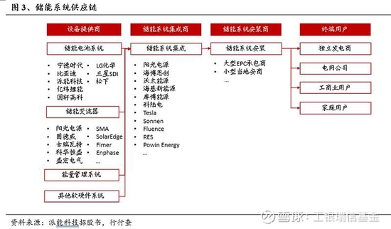 儲能產(chǎn)業(yè)鏈在電力體系中十分重要,諸多環(huán)節(jié)之間存在交集。儲能產(chǎn)業(yè)鏈上游主要包括電池原材料及生產(chǎn)設備供應商等;中游主要為電池、電池管理系統(tǒng)、能量管理系統(tǒng)以及儲能變流器供應商;下游主要為儲能系統(tǒng)集成商、安裝商以及終端用戶等。產(chǎn)業(yè)鏈涉及的環(huán)節(jié)眾多,從電池制造到EPC施工,再到各種場景下運營,電池制造環(huán)節(jié)與動力電池企業(yè)存在交集,EPC施工環(huán)節(jié)與光伏、風電施工企業(yè)存在交集,運營商和電網(wǎng)企業(yè)存在交集。