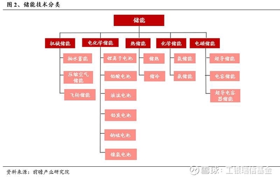 從不同技術(shù)類型來看,儲能主要分為機械儲能、電化學儲能、熱儲能、化學儲能、電磁儲能等。利用這些儲能技術(shù),電能能以機械能、化學能、熱能等形式存儲下來,并適時反饋回電力網(wǎng)絡。目前商業(yè)化應用最廣的儲能技術(shù)為抽水蓄能和電化學儲能,抽水蓄能也被稱為“傳統(tǒng)儲能”,抽水蓄能之外的儲能技術(shù)統(tǒng)稱“新型儲能”。