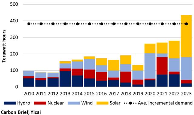 圖2:中國(guó)水電、風(fēng)電和太陽(yáng)能發(fā)電量(單位:千兆瓦)
