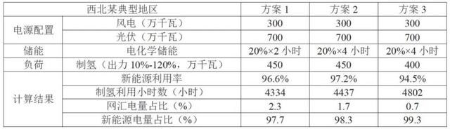 上述計(jì)算表明采用制氫作為柔性負(fù)荷是一種可行的新能源基地消納解決方案。得益于電解水制氫的柔性負(fù)荷對(duì)波動(dòng)性電源的適應(yīng)性,在三種不同的方案中,棄電率均低于6%,這與傳統(tǒng)的新能源大基地10%~15%左右的棄電率相比,新能源的利用率有了明顯的提高。