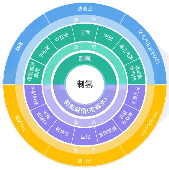 可再生能源電解水制氫是目前綠氫的最主要生產(chǎn)方式,電解槽是生產(chǎn)綠氫的關(guān)鍵部件,因此綠氫產(chǎn)能布局現(xiàn)階段可體現(xiàn)為電解槽產(chǎn)能布局。