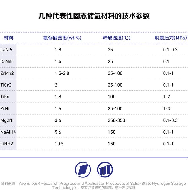 固態(tài)儲氫具備儲氫密度高、工作壓力低、安全性能好等優(yōu)勢,是安全用氫的發(fā)展方向,近年來商業(yè)價值持續(xù)提升。固態(tài)儲氫材料主要有儲氫合金、納米材料和石墨烯材料。其中,儲氫合金在我國已進入商業(yè)化探索階段,鎂系、鈦系、稀土系三類固態(tài)儲氫材料技術路線前景被看好。