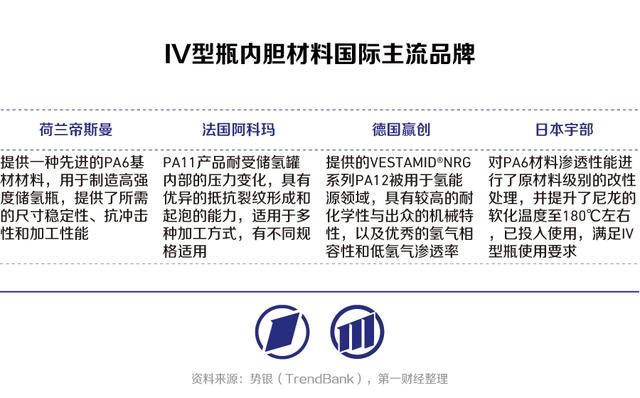 當前國內Ⅳ型儲氫瓶內膽材料主要由國外企業(yè)供應,包括日本宇部興產(chǎn)、荷蘭帝斯曼、美國杜邦(塞拉尼斯)、法國阿科瑪?shù)?,成本較高,是下一階段國產(chǎn)化突破的重點。
