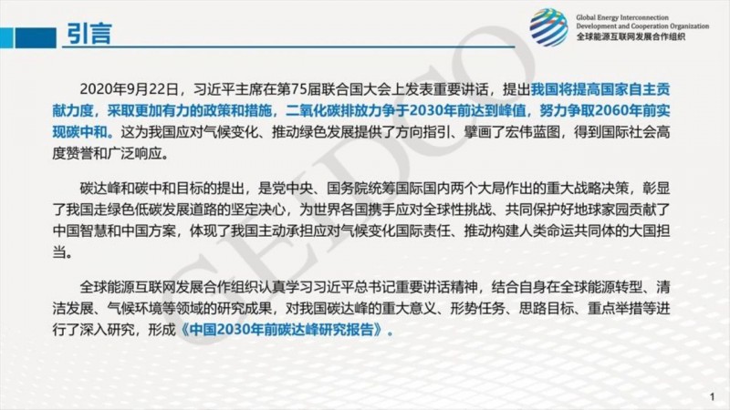 2021年3月18日,全球能源互聯(lián)網(wǎng)發(fā)展合作組織在北京舉行“中國碳達峰碳中和成果發(fā)布暨研討會”,并重磅發(fā)布三份高質(zhì)量研究報告《中國2060年前碳中和研究報告》、《中國2030年前碳達峰研究報告》、《中國2030年能源電力發(fā)展規(guī)劃研究及2060年展望》。