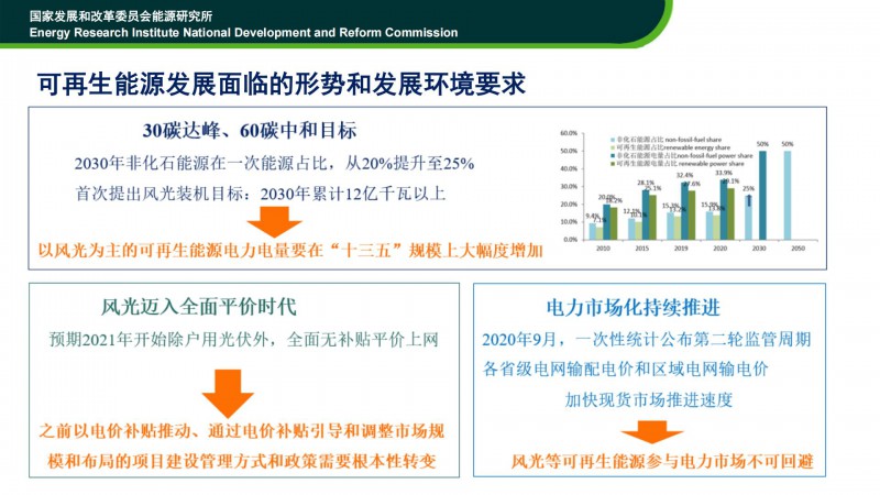 時璟麗老師在“2021光伏領(lǐng)袖大會”上的發(fā)言稿。時老師認(rèn)為:可再生能源要在能源轉(zhuǎn)型中發(fā)揮重要作用。2050年,中國要建成高比例可再生能源電力系統(tǒng)。其中,非化石能源占比將達(dá)到91%,風(fēng)電、光伏占比將達(dá)到73%!未來可再生能源的發(fā)展,從資源、技術(shù)、產(chǎn)業(yè)、經(jīng)濟性角度,均不存在瓶頸與障礙!