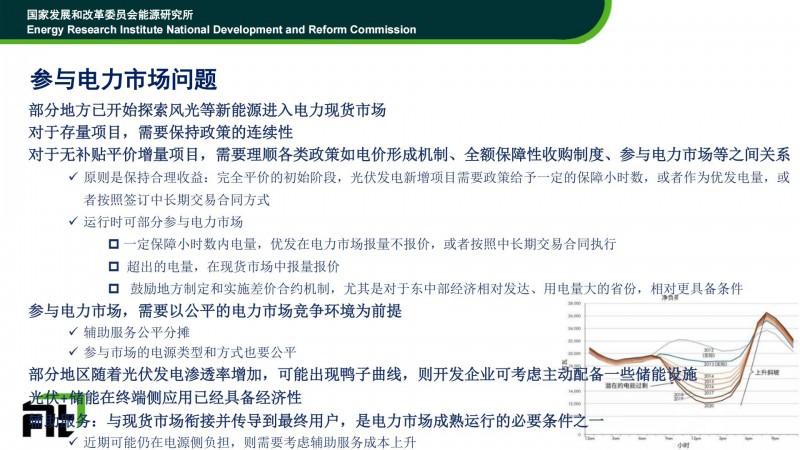 對于風(fēng)電、光伏參與市場化交易,時老師認(rèn)為:1)對于存量項目,要保證政策的延續(xù)性;2)對于新增項目,要建立公平的電力市場環(huán)境為前提,做好輔助服務(wù)費用分?jǐn)偂⑴c的類型和方式也要公平。