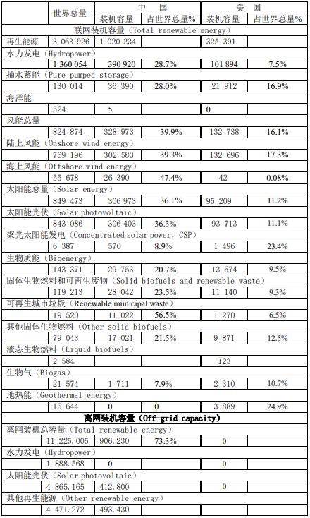 3、中國再生能源聯(lián)網(wǎng)的裝機容量為1 020 234MW,而離網(wǎng)的為906MW,而美國全部聯(lián)網(wǎng)。