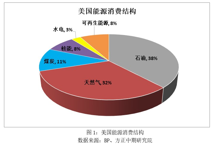 美國(guó)是僅次于中國(guó)的全球第二大能源消費(fèi)國(guó),美國(guó)能源消費(fèi)量在全球能源消費(fèi)總量中占比達(dá)到16%左右,超過(guò)所有歐洲國(guó)家的總和。石油仍然是美國(guó)第一大消費(fèi)能源,目前占比達(dá)到38%,其次是天然氣和煤炭,占比分別為32%和11%,與此同時(shí),隨著美國(guó)能源消費(fèi)結(jié)構(gòu)的逐步轉(zhuǎn)型,石油、煤炭消費(fèi)占比呈現(xiàn)下降趨勢(shì),而天然氣、水電、核能等清潔能源消費(fèi)占比在逐步提升。
