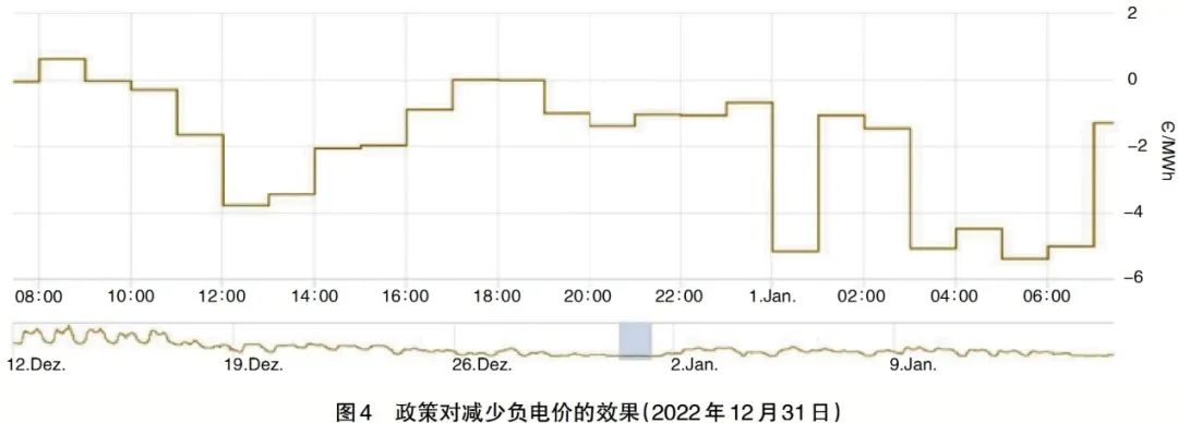 到2023年初,為避免負(fù)電價(jià)超過規(guī)定時(shí)間,可再生能源運(yùn)營商開始采取預(yù)防性減少發(fā)電量,以免失去市場和管理補(bǔ)貼。這一現(xiàn)象進(jìn)一步證實(shí),政策的靈活性對于減少負(fù)電價(jià)起到了明顯的作用(詳見圖4)。
