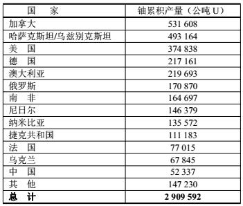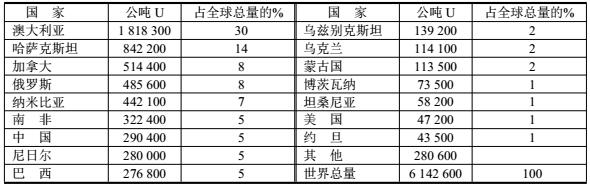 各國(guó)鈾儲(chǔ)量