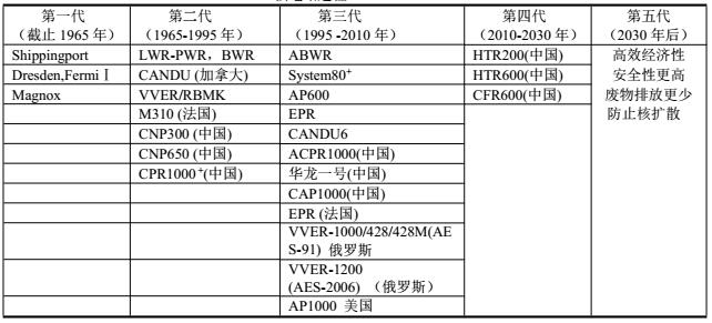 核能發(fā)電發(fā)展到2030年,進(jìn)入第五代操作系統(tǒng)將會(huì)提供更安全、更可靠、更經(jīng)濟(jì)、更持續(xù)發(fā)展,見表可以看出,中國(guó)核電站已經(jīng)自主研究開發(fā)的,并且已經(jīng)進(jìn)入第四代核電站,操作更加經(jīng)濟(jì)安全,排放廢物更加少。