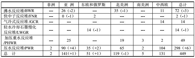 2018年全球運(yùn)行的反應(yīng)堆類型與分布