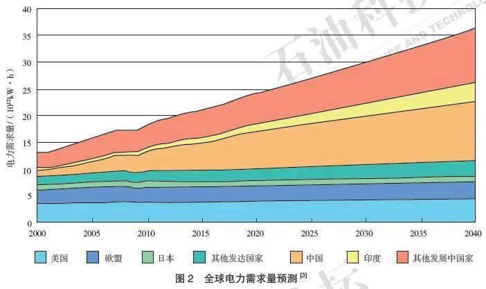第二,現(xiàn)有能源利用系統(tǒng)變革,電力、氫能等二次能源消費(fèi)規(guī)模不斷擴(kuò)大。電力在終端能源消耗中所占的比例已從2000年的16%,增長到2018年的20%。國際可再生能源署(IRENA)認(rèn)為,全球電力需求量將持續(xù)高速增長,2050年,電力在終端能源消費(fèi)中所占比例將提高到49%左右。國際能源署認(rèn)為,全球電力需求的增長在發(fā)達(dá)國家和發(fā)展中國家將表現(xiàn)出兩條截然不同的路徑:在發(fā)達(dá)國家,電力需求增長將被數(shù)字化和電氣化技術(shù)進(jìn)步帶來的能效全面提升所抵消;在發(fā)展中國家,家庭收入的增長、工業(yè)規(guī)模的擴(kuò)大和服務(wù)業(yè)的發(fā)展正在有力地推動(dòng)電力需求增長,按照既定政策,預(yù)計(jì)2019—2040年,發(fā)展中國家對(duì)全球電力需求增長的貢獻(xiàn)接近90%(圖2)。