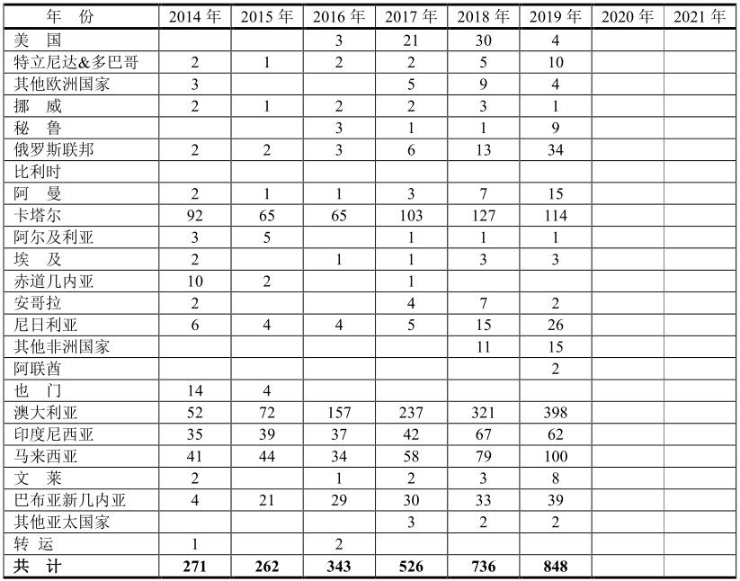 向中國銷售LNG約20個國家,但是主要的有卡塔爾、澳大利亞、印度尼西亞和馬來西亞等,這四個國家都是按照長期合同執(zhí)行的,即按“照付不議”付款形式。其他的國家多數(shù)按照短期合同執(zhí)行。