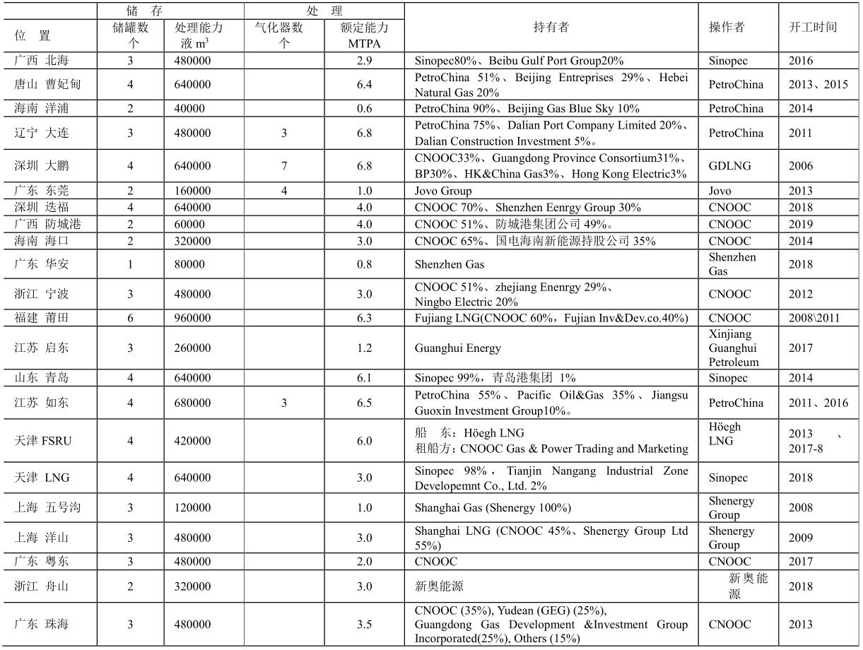 中國兩個新的再氣化終端于2019年開始商業(yè)運營。2019年1月,防城港液化天然氣啟動,其額定氣化能力為0.6 MTPA ,深圳天然氣碼頭(氣化能力為0.8 MTPA ),8月收到第一批商品LNG。