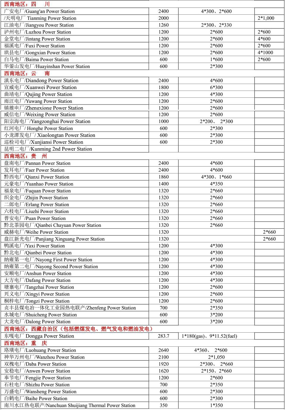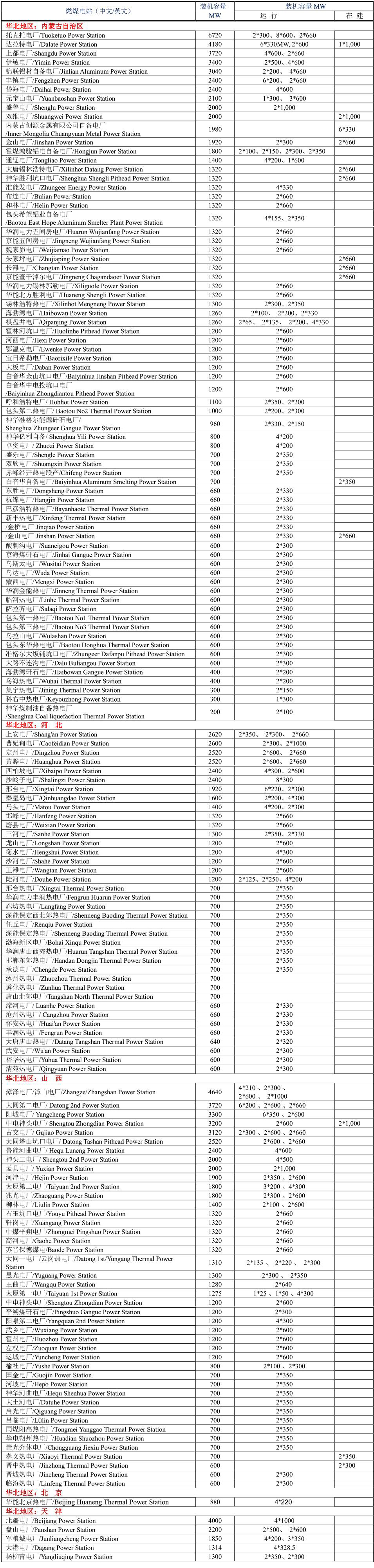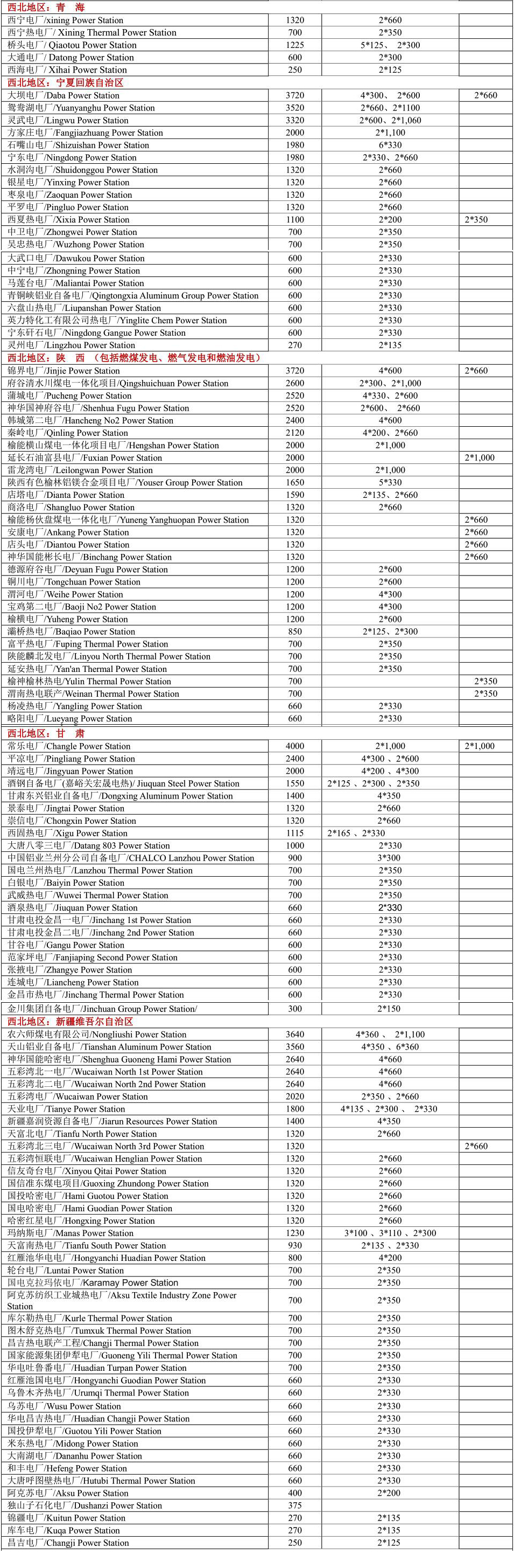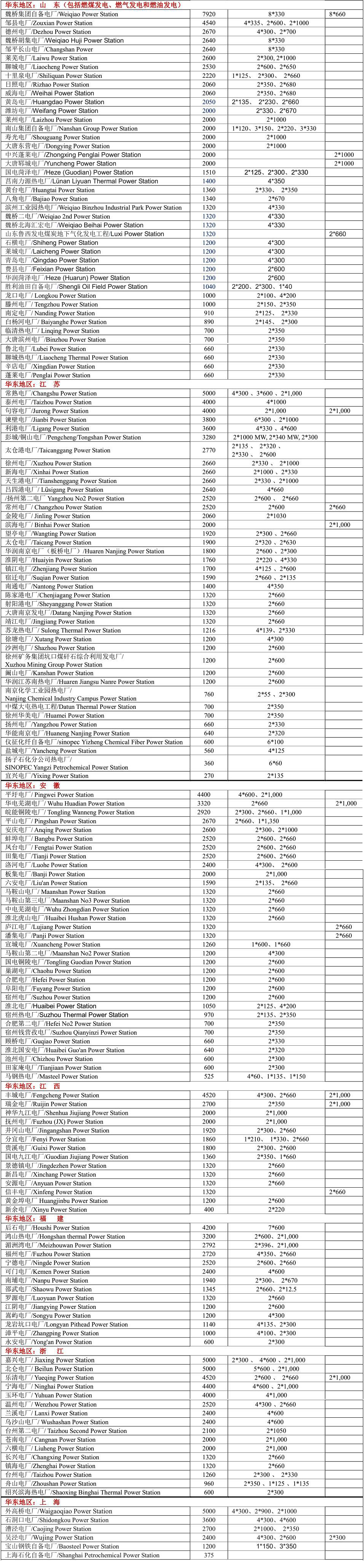 將中國(guó)一般劃分為七大地區(qū),列出2021年中國(guó)各省市燃煤電站,由于中國(guó)以燃煤發(fā)電為主,目前還在新建燃煤發(fā)電廠,因此不能保證本表完整無缺。