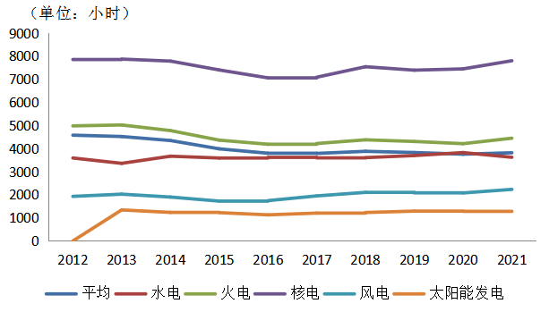 圖14 2012~2021年不同電源發(fā)電設(shè)備利用小時變動情況