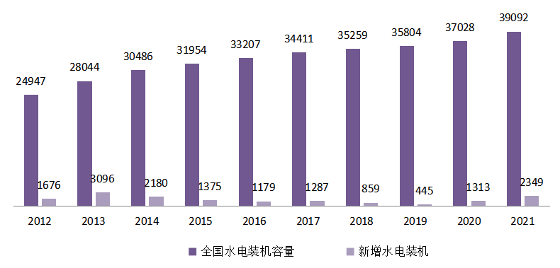 圖12 2012~2021年水電裝機(jī)和新增裝機(jī)情況(單位:萬千瓦)