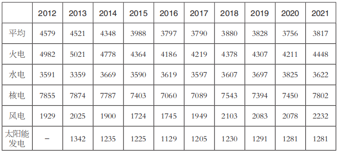 表4 2012~2021年發(fā)電設(shè)備利用小時數(shù)(單位:小時)