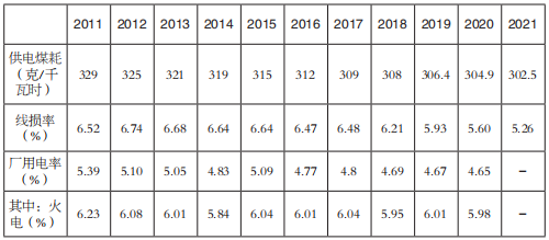 (一)供電標(biāo)準(zhǔn)煤耗持續(xù)下降,十年累計下降26.5克/千瓦時