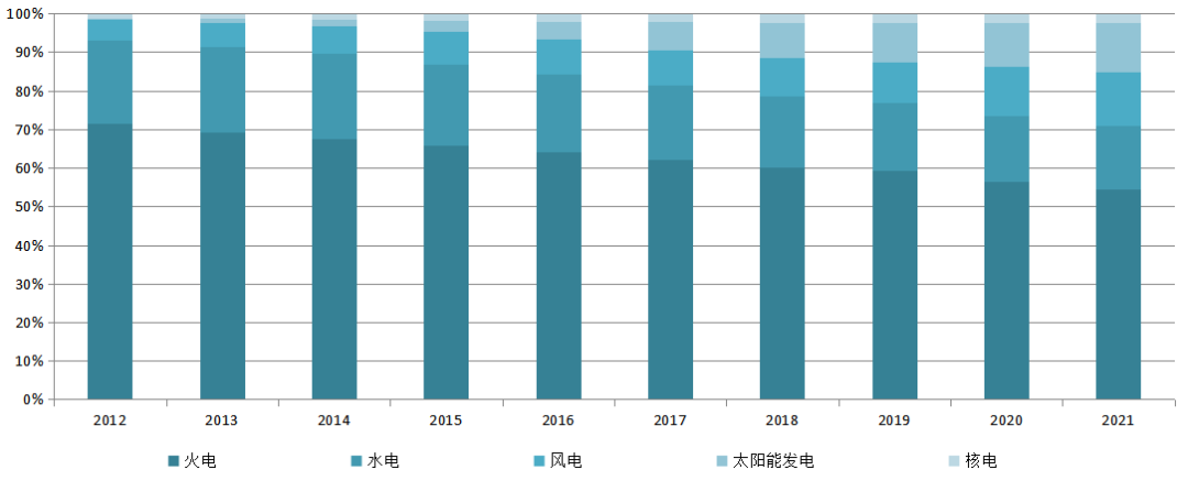 圖5 2012~2021年全國電力裝機(jī)結(jié)構(gòu)