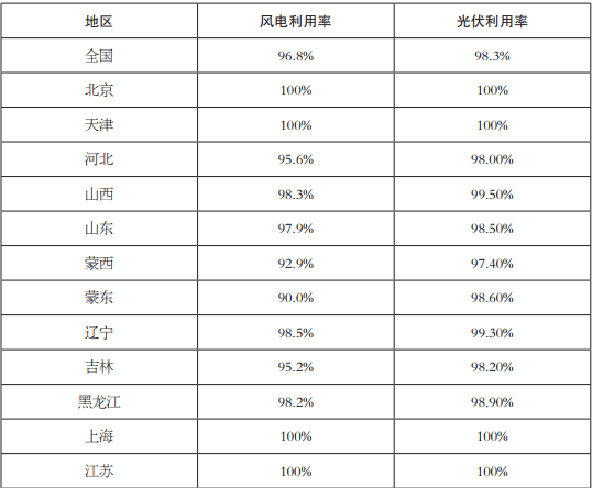 全年風(fēng)電平均利用率同比降低0.1個(gè)百分點(diǎn)。山西、遼寧、青海、蒙西、寧夏和新疆的風(fēng)電利用率同比分別提升0.8、0.5、3.4、1.8、0.9、2.7個(gè)百分點(diǎn)。北京、天津、上海、江蘇、浙江、安徽、福建、湖北、重慶、四川、西藏、廣西、海南等13個(gè)省(區(qū)、市)風(fēng)電100%消納。河北(95.6%)、蒙西(92.9%)、蒙東(90.0%)、吉林(95.2%)、陜西(95.8%)、甘肅(93.8%)、青海(92.7%)、新疆(95.4%)等八個(gè)地區(qū)風(fēng)電利用率低于全國(guó)平均水平。