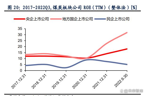 ROE 數(shù)據(jù)方面,煤炭地方國企上市公司表現(xiàn)優(yōu)于央企上市公司。受益于煤炭價格的提升, 資產(chǎn)收益率在 2020 年后迎來了大幅度增長。民企上市公司整體表現(xiàn)弱勢,ROE 呈下降趨 勢,遠低于國企央企表現(xiàn)。PB 估值方面,2020 年后隨著企業(yè)經(jīng)營效益改善和煤炭板塊整體 股價的提升,國企央企上市公司的該項指標(biāo)也有一定程度的增長,走勢與 ROE 接近。但考 慮到 ROE 的增長幅度更為明顯,我們認(rèn)為 PB 的增長仍不足以完全反應(yīng)企業(yè)效益增長的速 度。而煤炭行業(yè)在能源政策導(dǎo)向調(diào)整與電力市場化加速推進背景下,疊加新一輪煤礦產(chǎn)能周 期,供需或?qū)㈤L期趨緊,煤炭公司的高收益有望維持,內(nèi)在價值有望逐漸被市場認(rèn)可,估值 有望迎來進一步修復(fù)。
